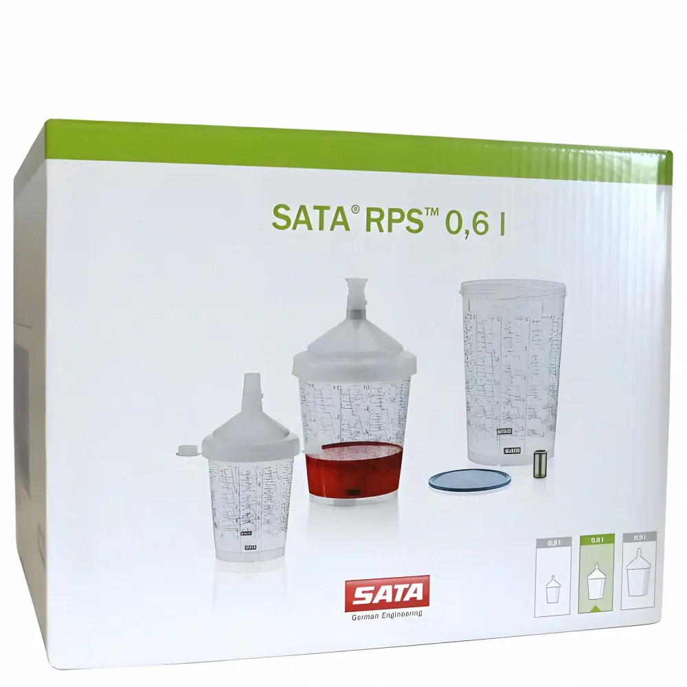 このカップはSATAスプレーガン専用に開発され、塗装準備から塗装、塗装後の洗浄作業の効率をアップする画期的なシステムです。